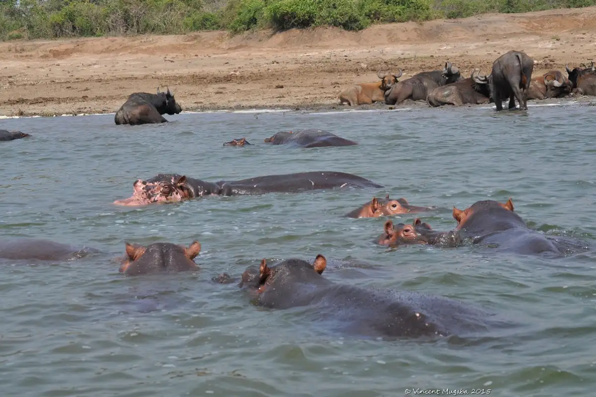 - Day 7 - Transfer to Queen Elizabeth NP and take the Boat trip on theAfter breakfast you will Exit Kibale NP and continue your journey to Queen Elizabeth NP. Queen is Uganda’s second largest park, located at the base of the majestic Rwenzori Mountain range, adjacent to Lake Edward and Lake George. The park’s diverse ecosystem which includes sprawling savannah makes it the ideal habitat for classic big game, ten primate species including chimpanzees and over 600 species of birds. You will reach Queen early enough to rest, have lunch and later go for a boat safari along the Kazinga Channel which joins Lake George to Lake Edward. You will surely be fascinated by the concentrations of giant hippos, elephants and crocodiles among others. You will also see many varieties of birds at the water shores. Return to the accommodation for dinner and later overnight rest.