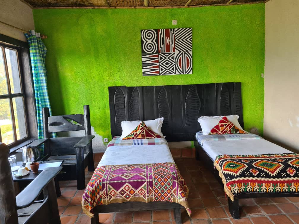 The Nyungwe Nziza Ecolodge is situated at the entrance of Nyungwe National Park. We have Sixteen double and twin wood cottages and four family wood cottages with a fire place inside. And we have Two double rooms and three twin rooms. And two big tents twin for enjoying the camping.