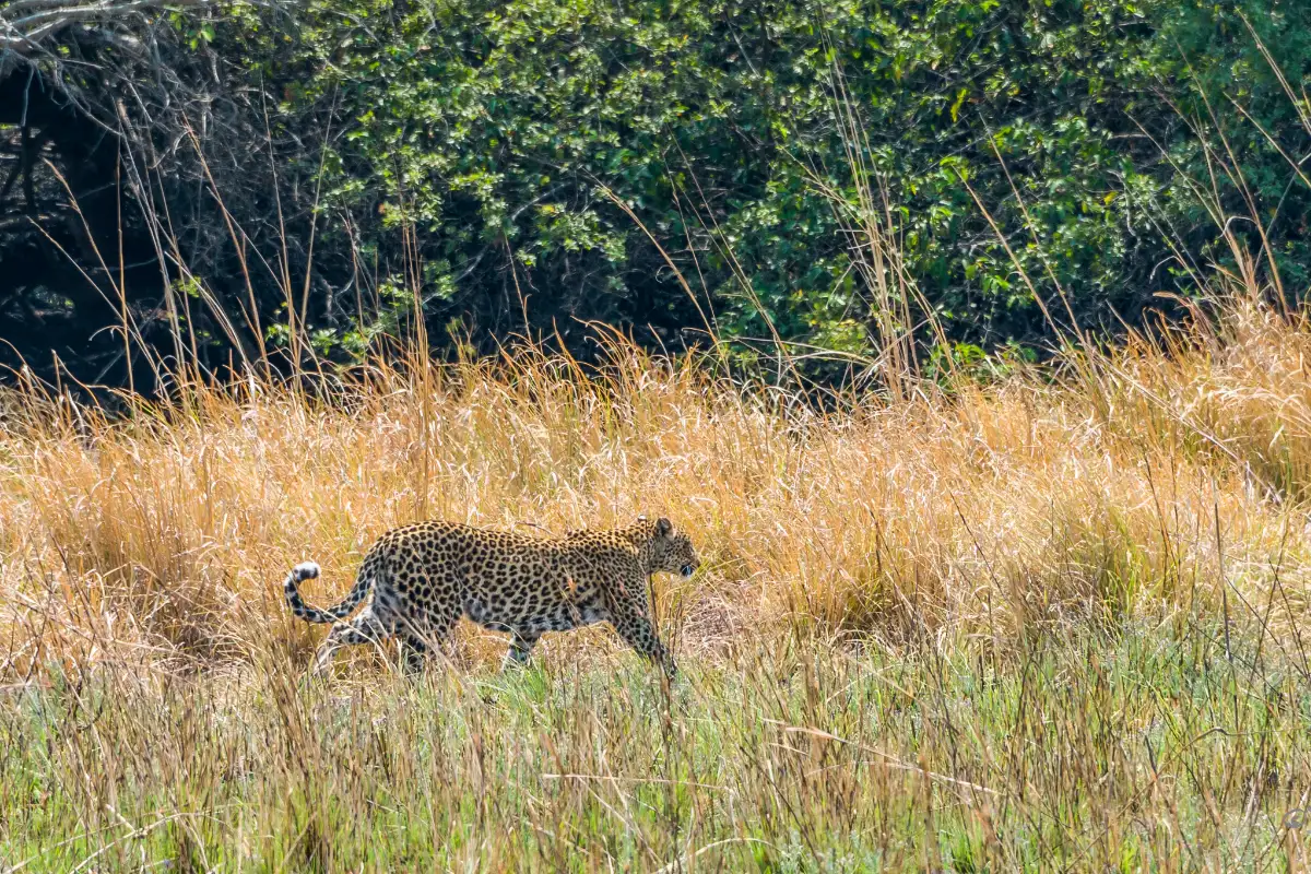 Kafue National park is one of the best places in Africa to find leopards. In certain areas, these secretive and elusive predators are frequently seen, especially on night drives and even in afternoon boat cruises along the Kafue River. Cheetah is found throughout the Kafue, from Nanzhila in the south to the Busanga in the north. Kafue has the largest population of African wild dogs compared to any other national park in Africa. The Kafue River and its tributaries themselves are a hive of activity and home to pods of hippos and some of the largest crocodiles in southern Africa. It is not uncommon to watch elephants frolicking in the water and swimming from bank to bank.